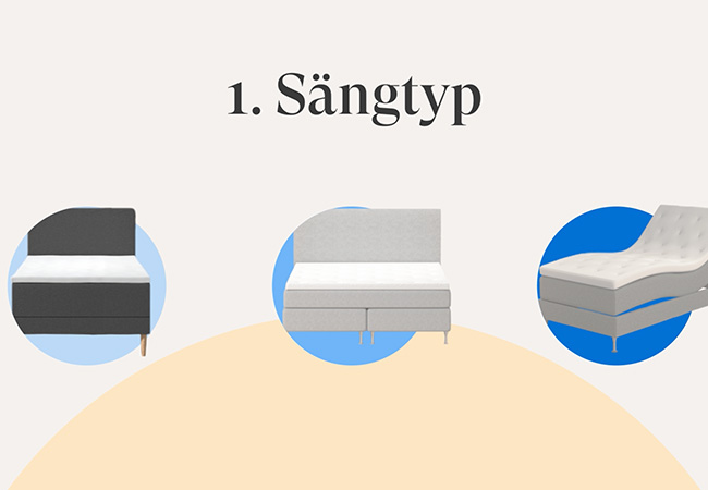 När det är dags för en ny säng behöver du först bestämma vilken sängtyp som passar dig. En ramsäng är för dig som önskar en smidig och flexibel säng, medan en kontinentalsäng är valet för dig som vill ha maximal komfort. En ställbar säng däremot passar dig som vill ha en säng som kan justeras helt efter dina behov; till exempel om du ofta tittar på TV i sängen, eller behöver lätt höjd huvudända för att slippa snarkningar.