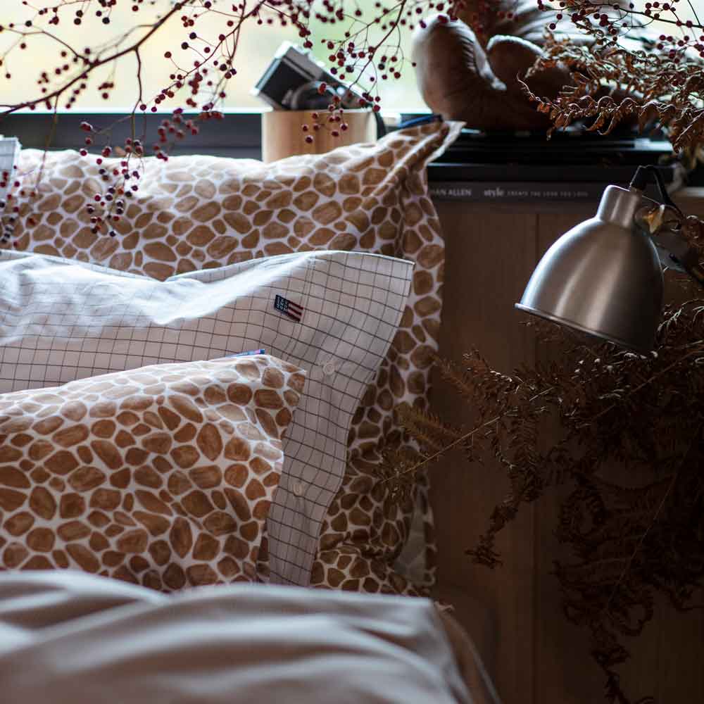Med detta örngott i glansig och riktigt mjuk satin från Lexington är för dig som vill ta in naturen med djurmönster. Örngottet har ett heltäckande tryckt giraffmönster som sätter färg och rörelse i sängkläderna. På kortsidorna avslutas örngottet med en dekorativ vinge. Tillverkat i 100% ekologisk bomull och är OEKO-TEX-cetifierad. Printed Giraffe finns även i matchande påslakan.