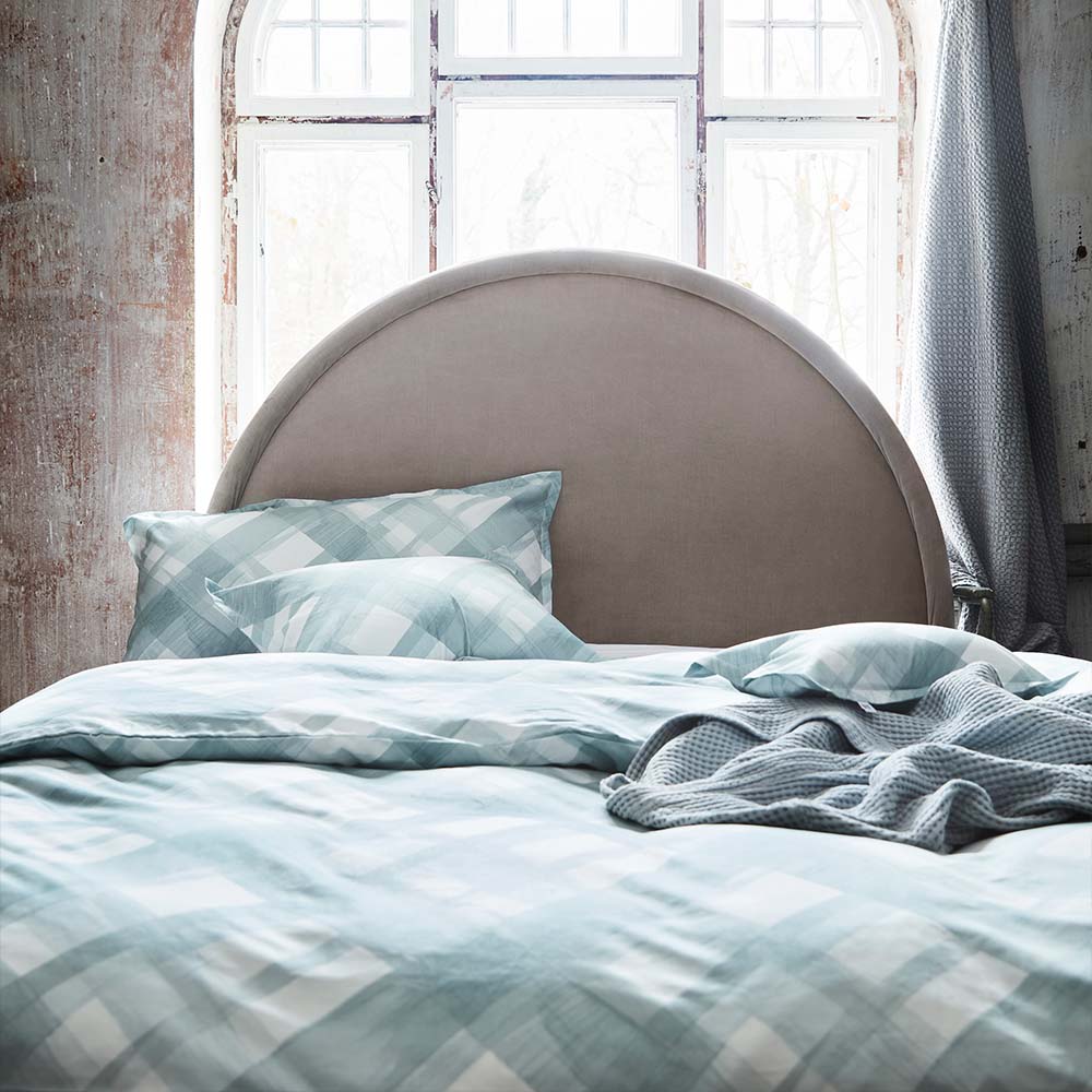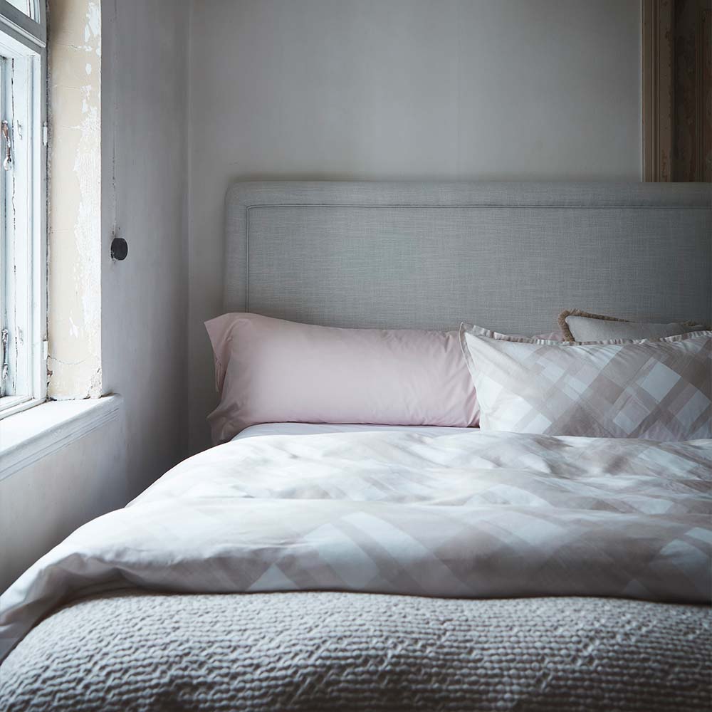 Örngott Spazzola i silkeslen satin från Mille Notti. Stytt av finkammad bomull. med en trådtäthet på 340 TC. Tryckt med handmålade diagonala rutor. Sytt med 2 cm vinge och överlappning på baksidan. Tillverkade i Portugal. STANDARD 100 by OEKO-TEX®. Matcha gärna med påslakan i samma serie.