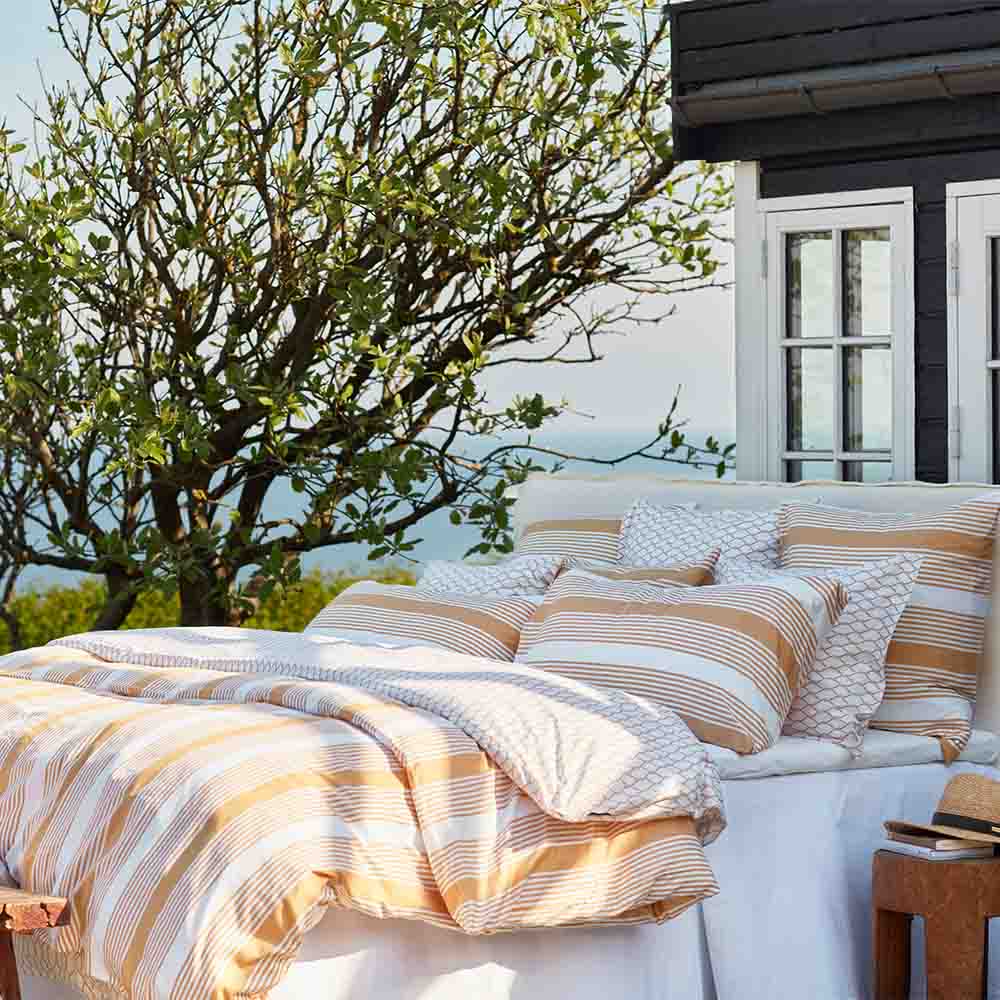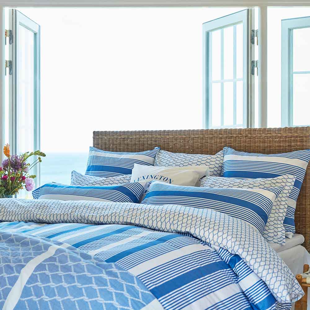 Lexington Rope Printed Cotton Poplin påslakanset är producerat av 100% krispigt sval bomullspoplin, och tack vare materialets rynkmotstånd är det härligt lättskött. Tyget har ett mönster av sammanflätade rep. Örngottet har omlottstängning och påslakanet har knappstängning som understryker den prydliga looken.