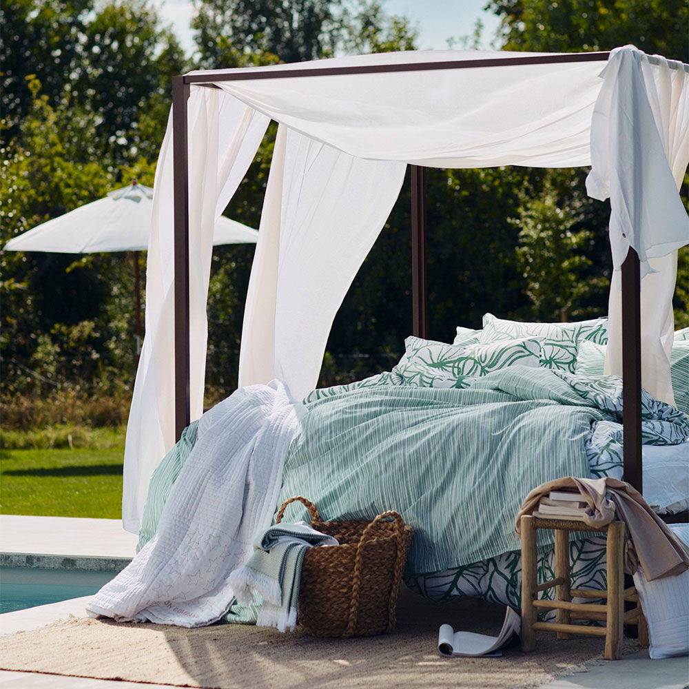 Produktegenskaper Material: 100% bomull Poplin av hög kvalitet med hög trådantal på 195 TC och garnantal på 50 s. Tygkvalitet: Slätvävd poplin Mönster: Randig Färg: Tvåfärgat Förslutning: Omlottstängning & gummiknappar Tillverkningsland: Portugal OEKO-TEX-certifierad bomull
