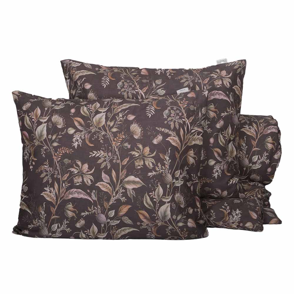 Upplev en kombination av elegans och komfort med Värnamo Oxie Påslakanset, ett stilfullt set i bruna toner med ett vackert bladverksmönster. Tillverkat av 100% bomullssatin, erbjuder detta påslakanset en otrolig lyster tack vare dess höga trådtäthet på 272 TC. Denna kvalitet säkerställer att tyget är både mjukt och hållbart, vilket ger dig en behaglig sovupplevelse natt efter natt.