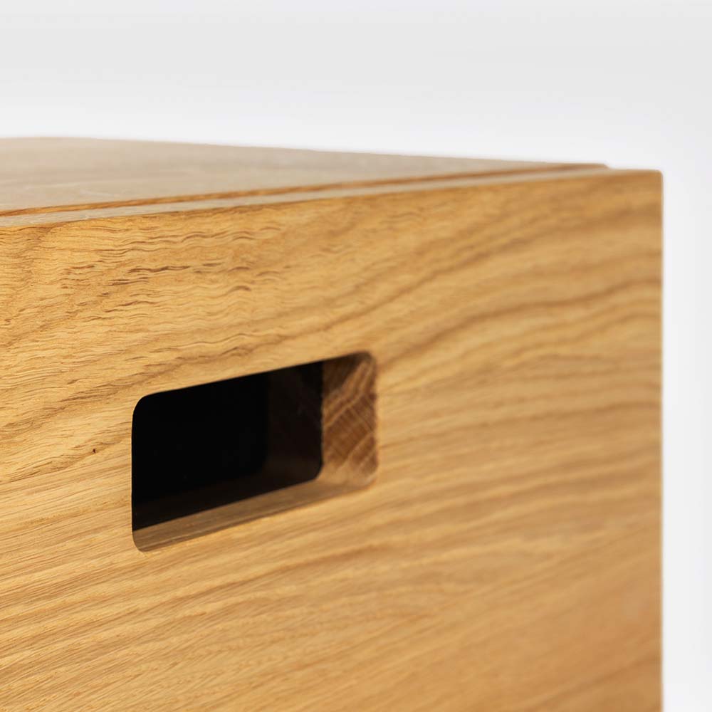 Produktegenskaper Mått: B:50 x H:50 x D:25 cm Material: massiv ek, metallben Färg: Natur, Light eller Dark Märkning: FSC certifierat trä Tillverkningsland: Estland Levereras omonterad