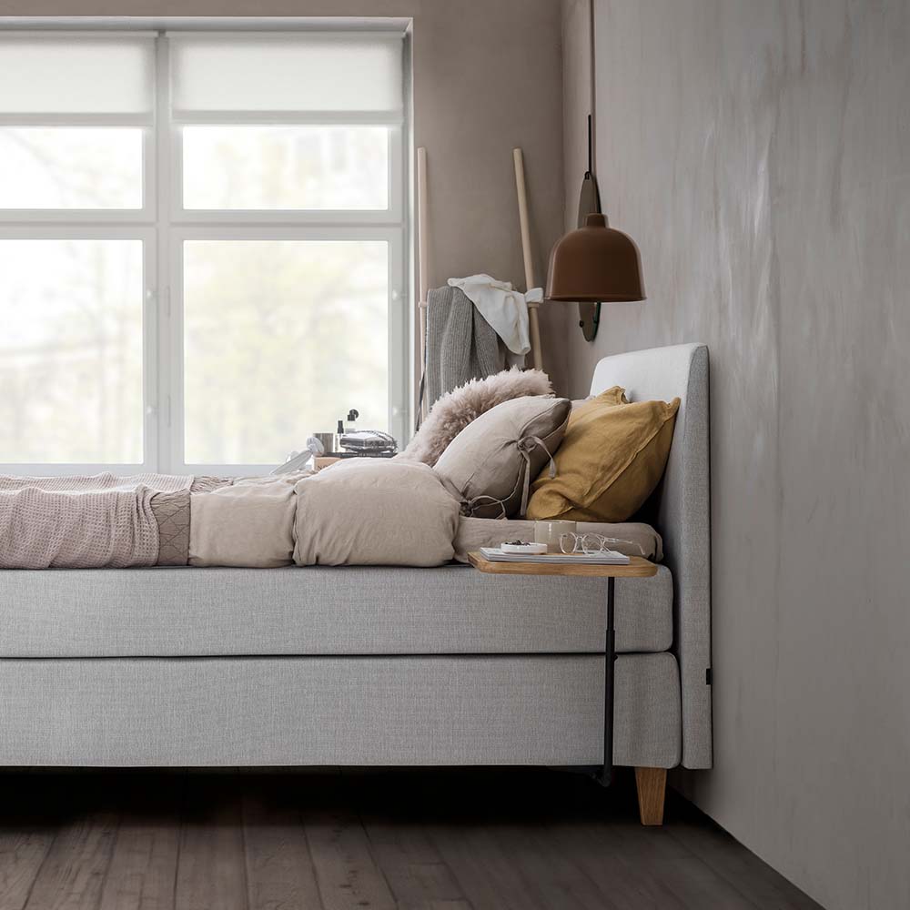 Jensen Ceres sänggavel är en textilbeklädd huvudgavel i stram design. Vi tycker det är snyggt om du matchar den med din säng. Jensen använder samma slitstarka tyger som de har på sina sängar.