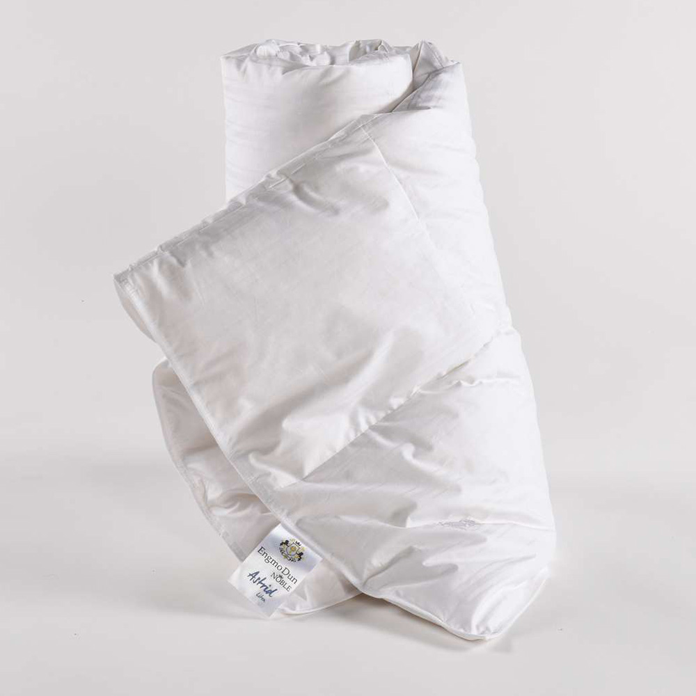 Engmo Dun Liten Astrid Barntäcke är tillverkat av 100% europeiskt gåsdun och bomullstyg, med en storlek på 100x130 cm och en TOG-värde på 4. Fyllningen väger 220 g och har en bärighet på 800 enligt EN12130 standard. Dunet är av klass 1 enligt EN12934 och kommer från Europa, med full spårbarhet.