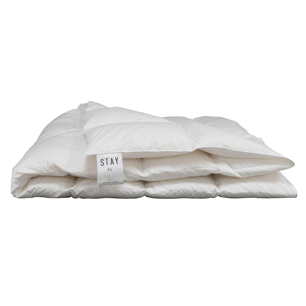 Norsk Dun STAY Fantastic Duntäcke är fyllt med den finaste vita muscovy-dunen, bestående av 90 % dun och 10 % små fjädrar. Fodralet är tillverkat av mjuk och behaglig cambric i 100 % bomull, noggrant utvalt för att komplettera dunets kvalitet. Dunet har enastående förmåga att hantera fukt, reglera temperatur och erbjuda överlägsen komfort, vilket gör dessa täcken exceptionella. Dessutom är dunet spårbart till sitt ursprung och uppfyller de strängaste europeiska standarderna för renhet och kvalitet.